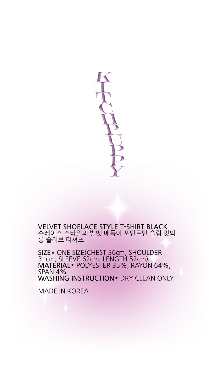 슈레이스 스타일의 벨벳 매듭이 포인트인 슬림 핏의 롱 슬리브 티셔츠.