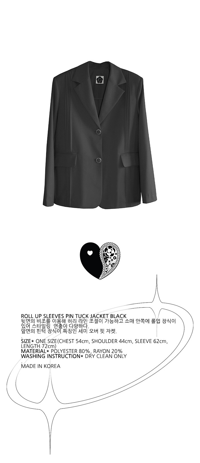 ROLL UP SLEEVES PIN TUCK JACKET BLACK