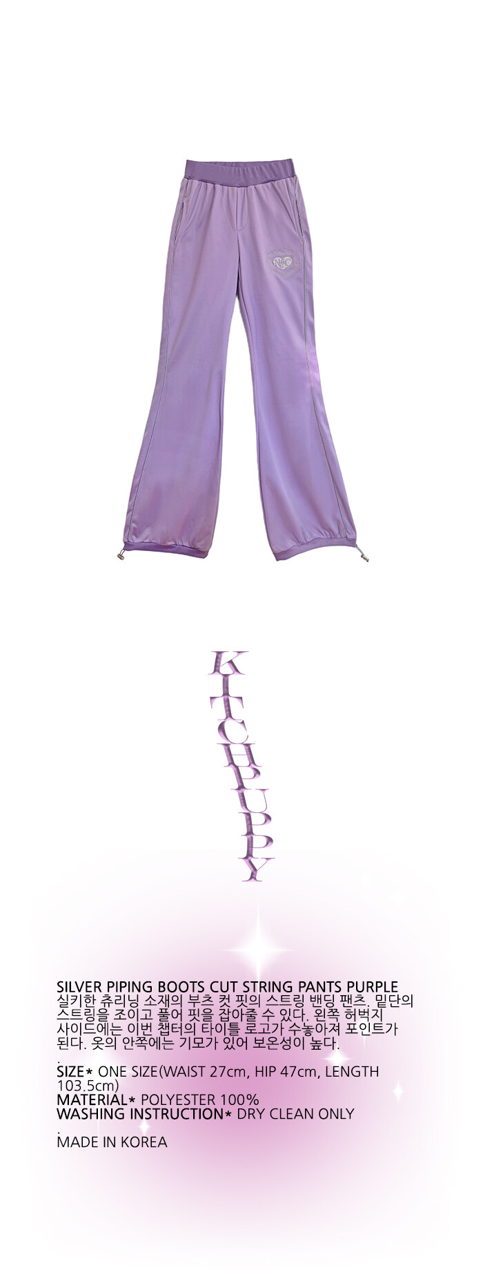 SILVER PIPING BOOTS CUT STRING PANTS PURPLE
