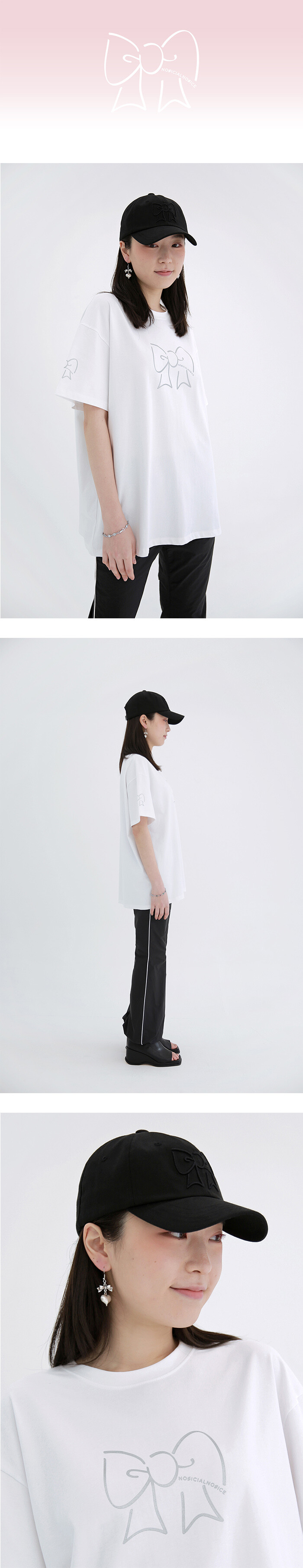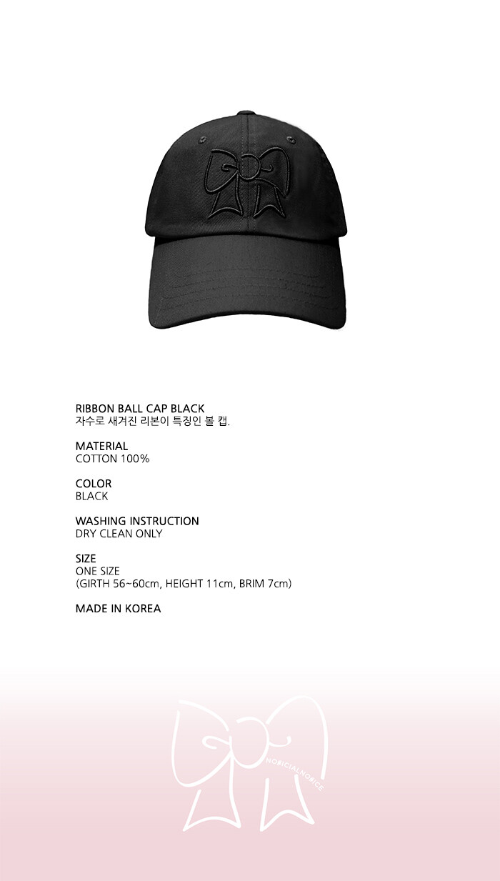 자수로 새겨진 리본이 특징이며 백 사이드에 아크릴 리본 장식이 달린 볼 캡.