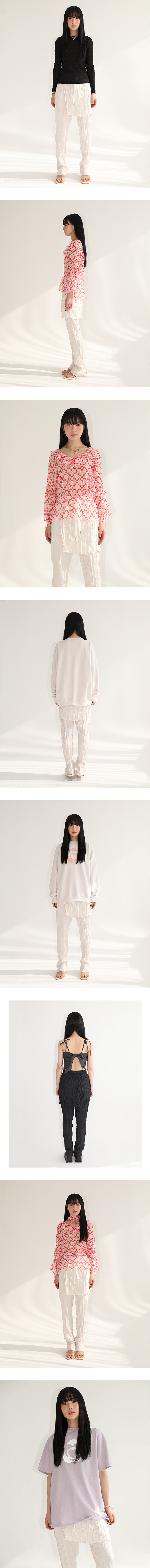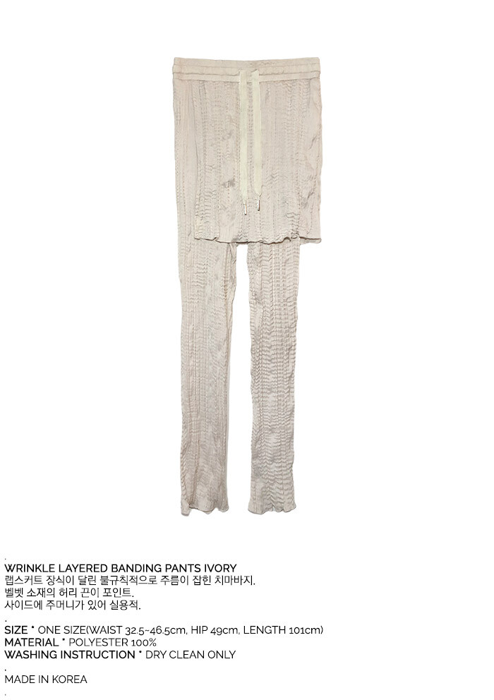 랩스커트 장식이 달린 불규칙적으로 주름이 잡힌 치마바지.