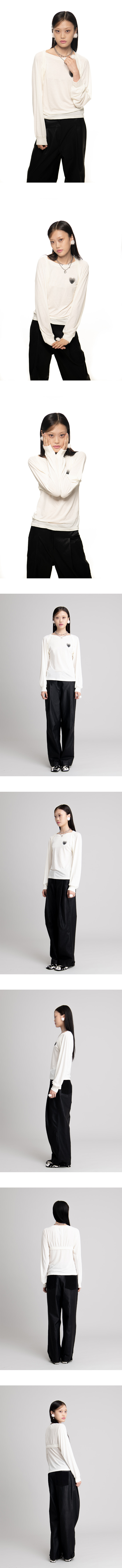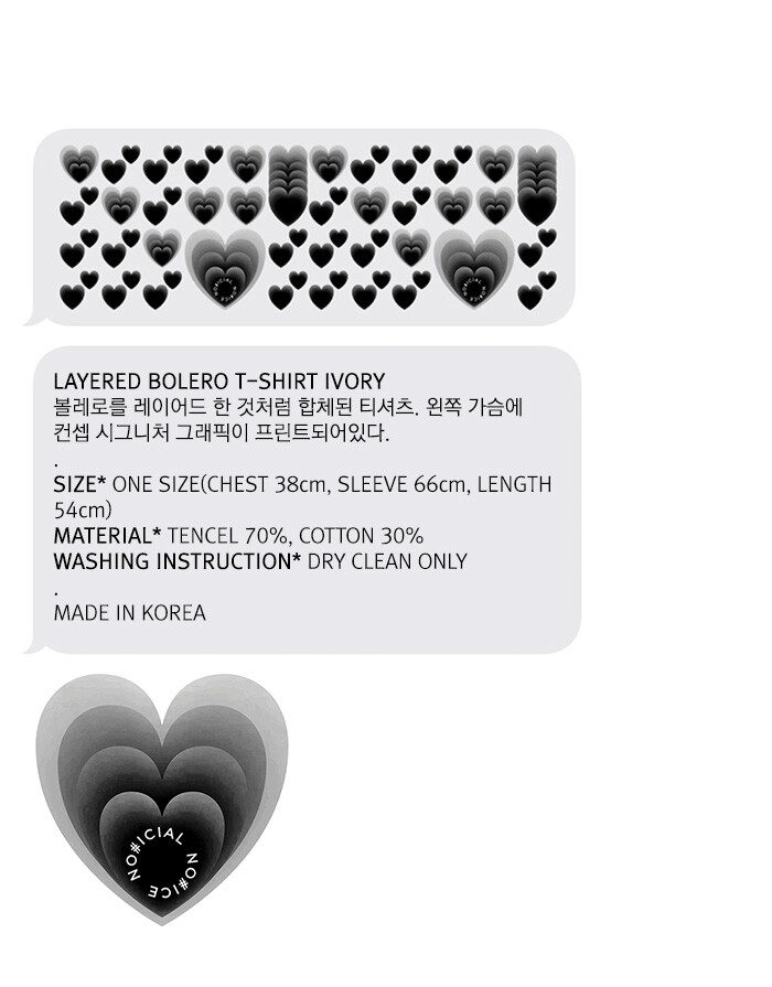 볼레로를 레이어드 한 것처럼 합체된 티셔츠. 왼쪽 가슴에 컨셉 시그니처 그래픽이 프린트되어있다.