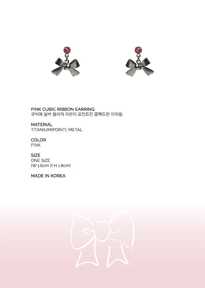 큐빅에 실버 컬러의 리본이 포인트인 콤팩트한 이어링.