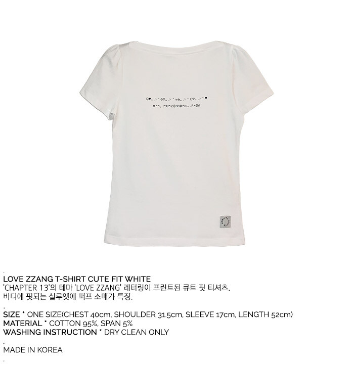 'CHAPTER 13'의 테마 'LOVE ZZANG' 레터링이 프린트된 큐트 핏 티셔츠. 바디에 핏되는 실루엣에 퍼프 소매가 특징.