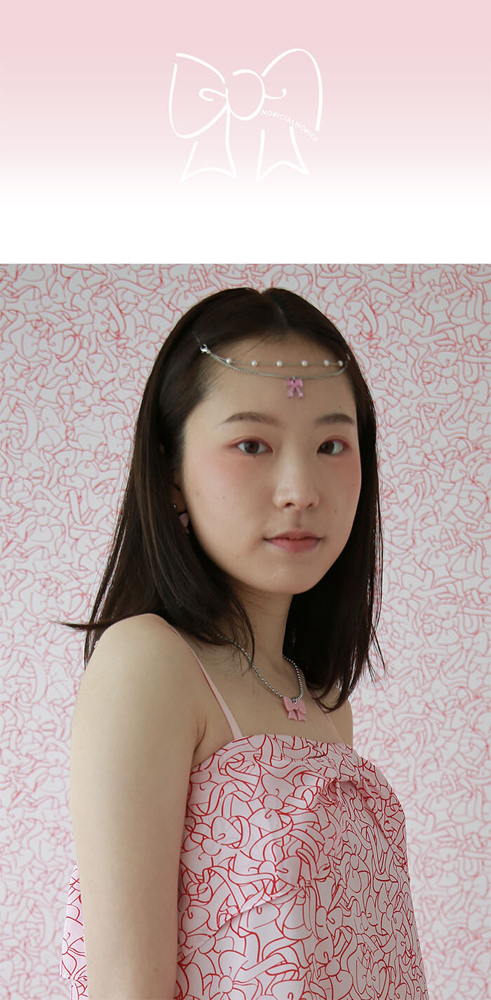 아크릴 소재로 만들어진 입체의 리본 넥클레스.
