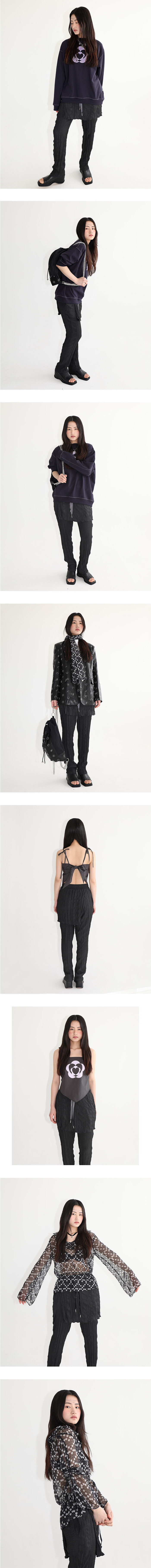 WRINKLE LAYERED BANDING PANTS ASH BLACK