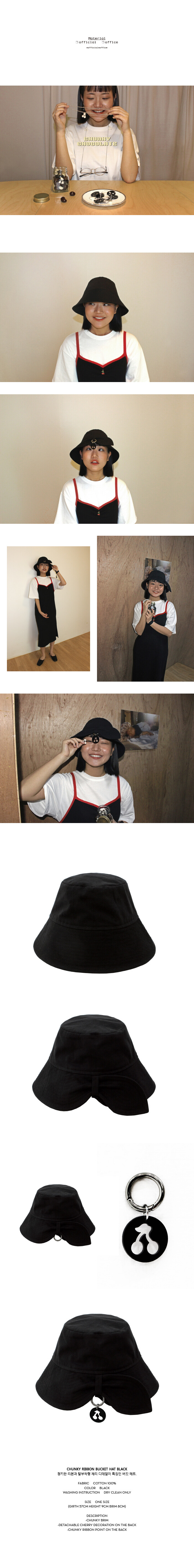 청키한 리본과 탈부착형 체리 장식이 특징인 버킷 해트.