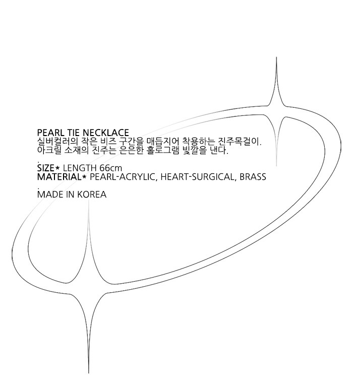 실버컬러의 작은 비즈 구간을 매듭지어 착용하는 진주목걸이.