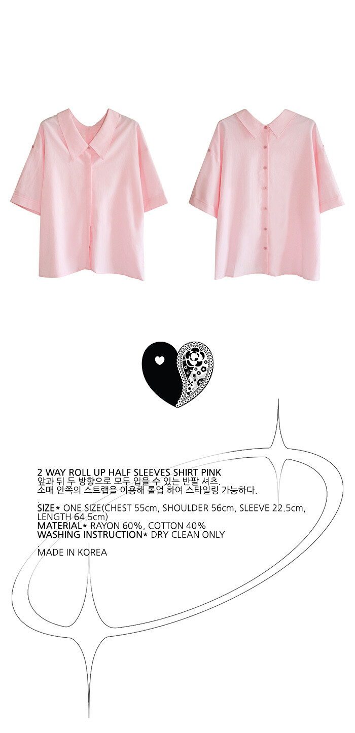2 WAY ROLL UP HALF SLEEVES SHIRT PINK
