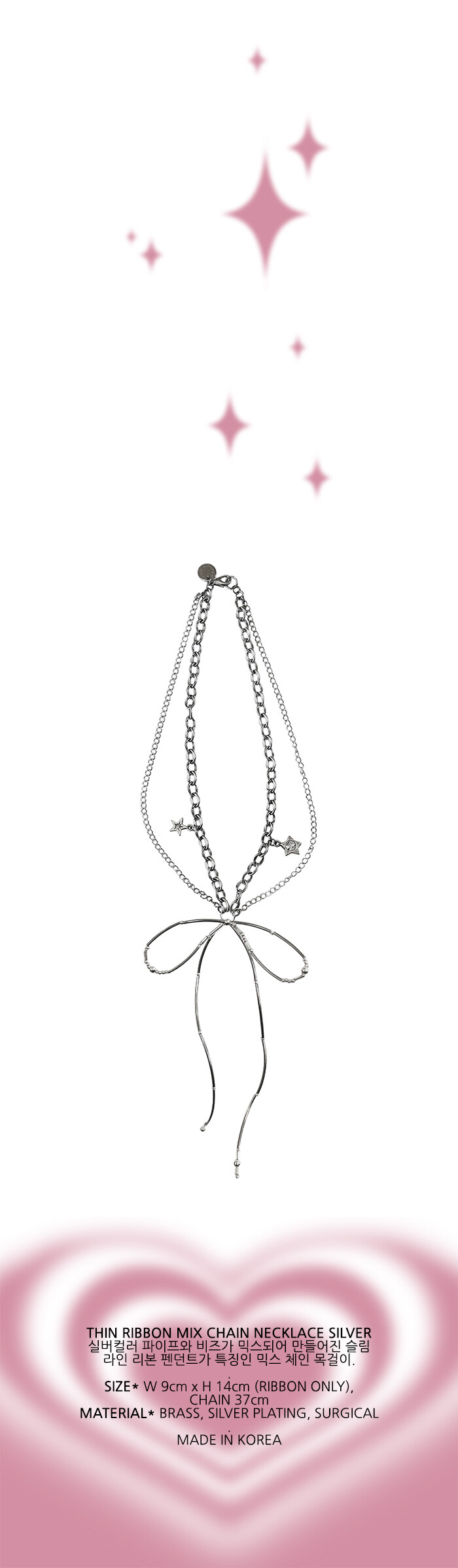 THIN RIBBON MIX CHAIN NECKLACE SILVER