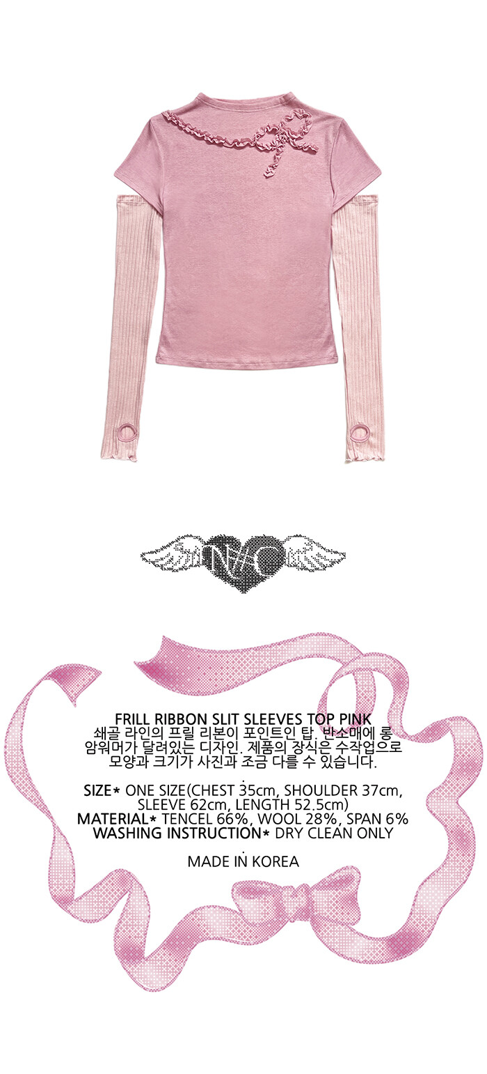 FRILL RIBBON SLIT SLEEVES TOP PINK