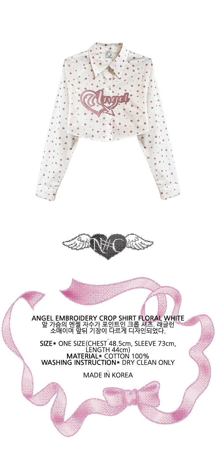 ANGEL EMBROIDERY CROP SHIRT FLORAL WHITE