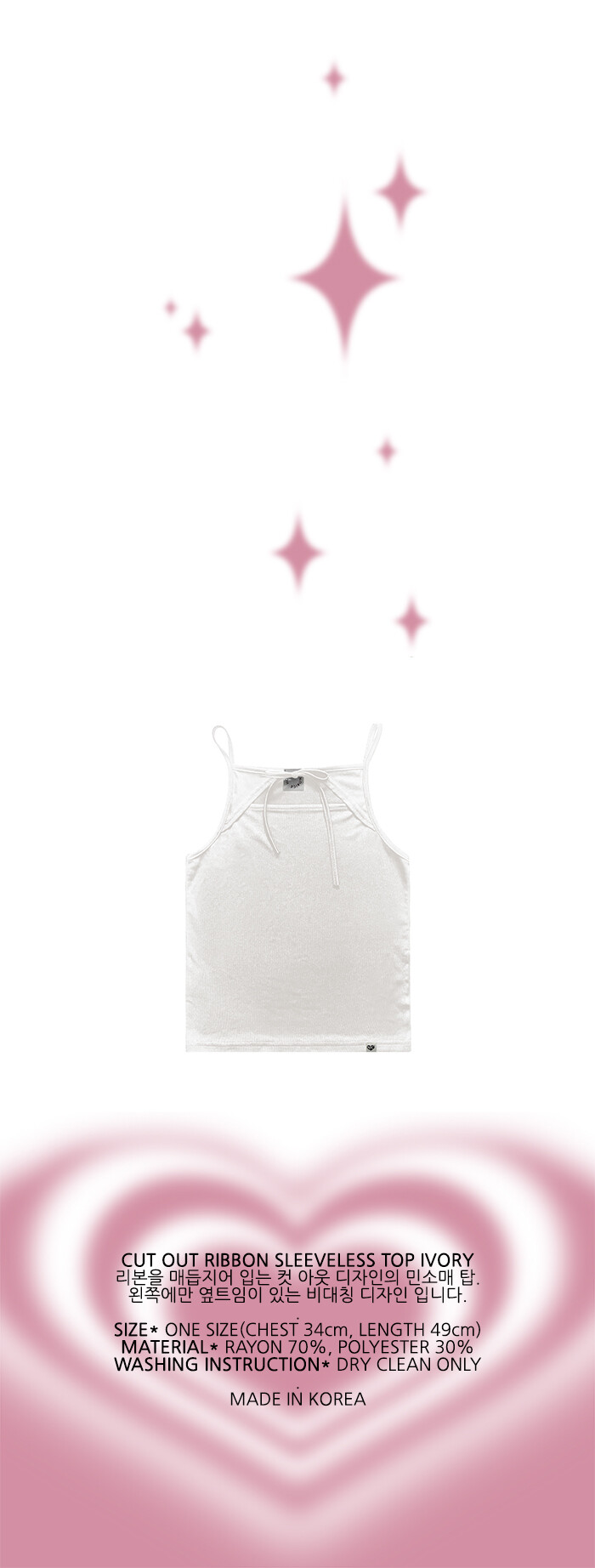 CUT OUT RIBBON SLEEVELESS TOP IVORY