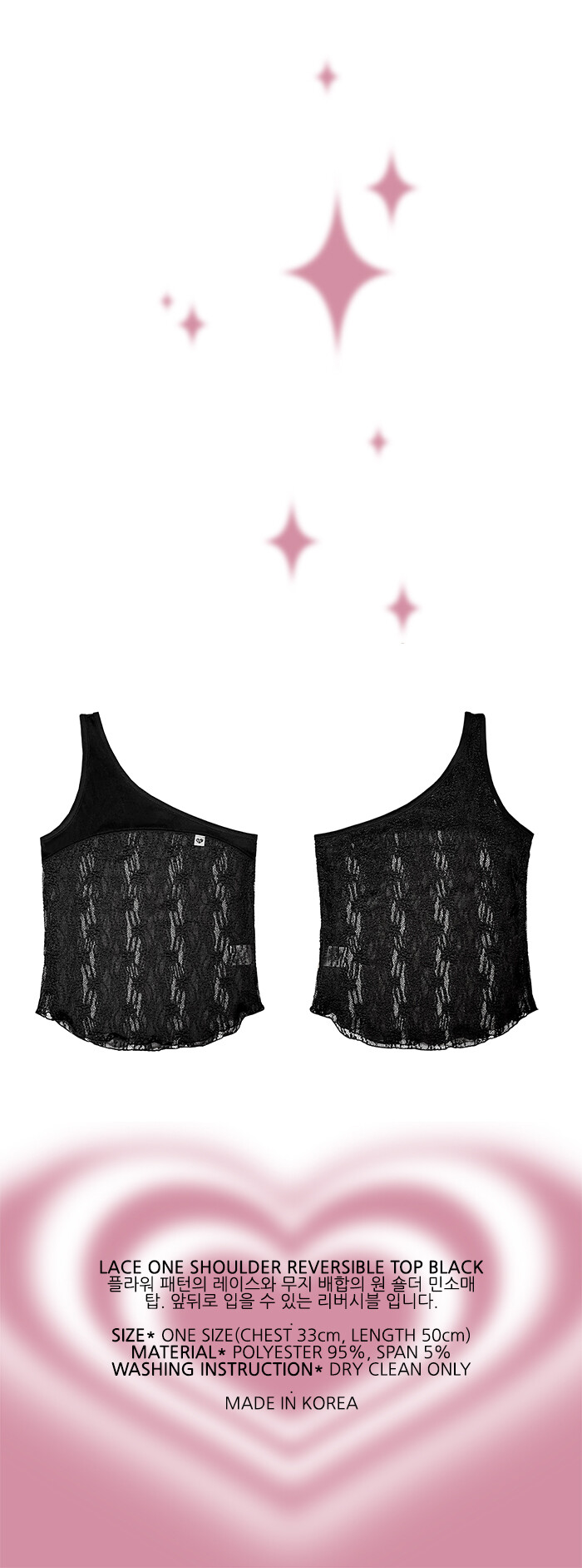 LACE ONE SHOULDER REVERSIBLE TOP BLACK