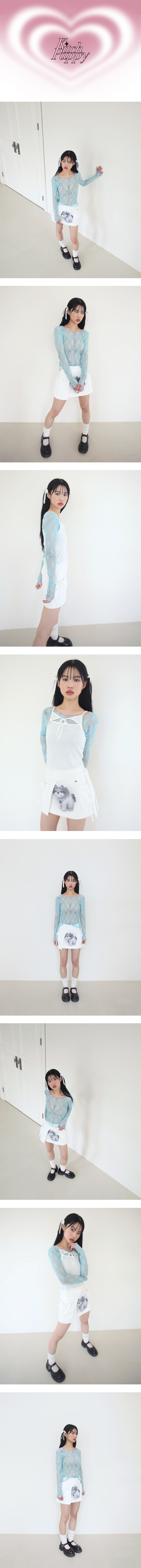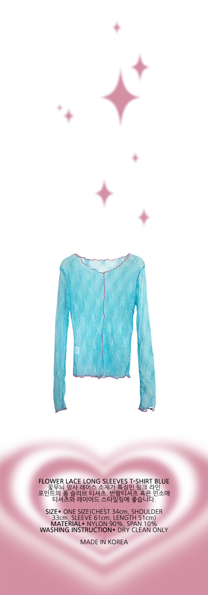 FLOWER LACE LONG SLEEVES T-SHIRT BLUE
