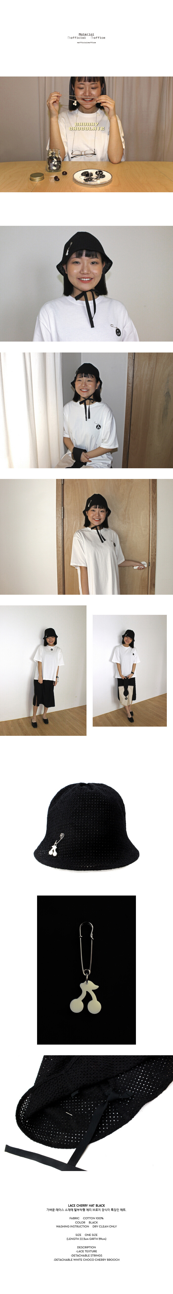 가벼운 레이스 소재에 탈부착형 체리 브로치 장식이 특징인 해트.