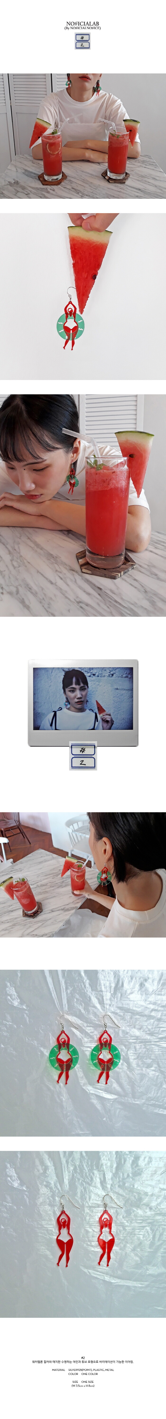 워터멜론 컬러와 매치한 수영하는 여인과 튜브 모형으로 바리에이션이 가능한 이어링.