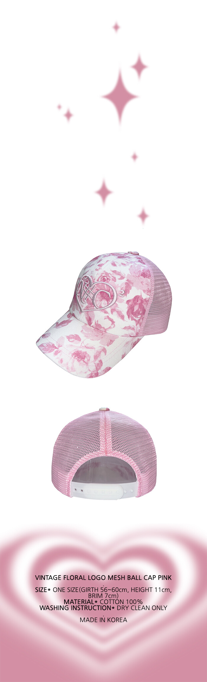 VINTAGE FLORAL LOGO MESH BALL CAP PINK