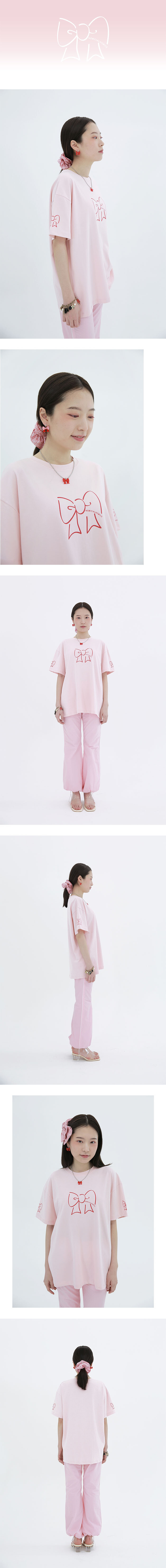 리본 그래픽이 프링트된 티셔츠. 오버핏 실루엣에 리본 그래픽이 프린트된 소매가 특징이다.