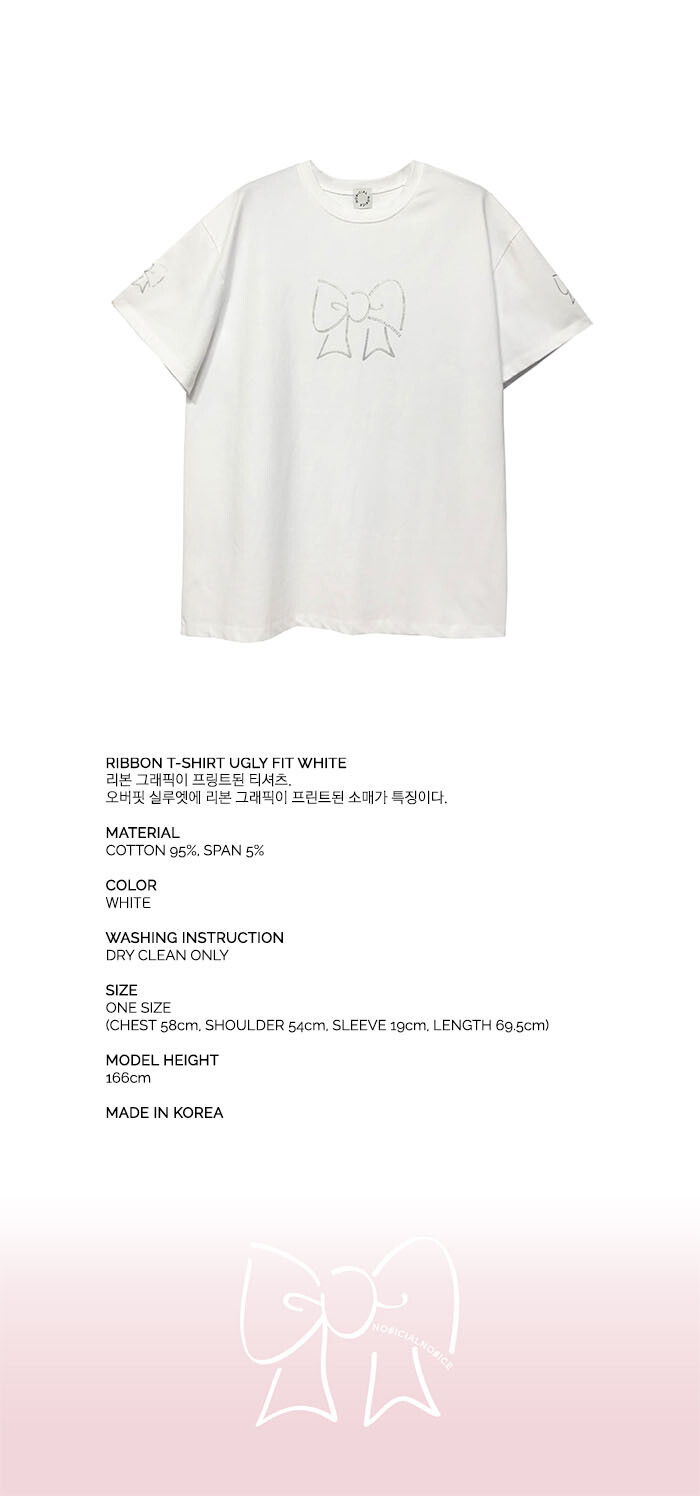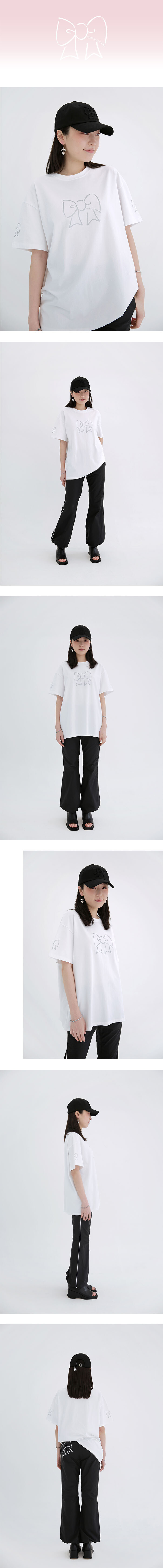 리본 그래픽이 프링트된 티셔츠. 오버핏 실루엣에 리본 그래픽이 프린트된 소매가 특징이다.