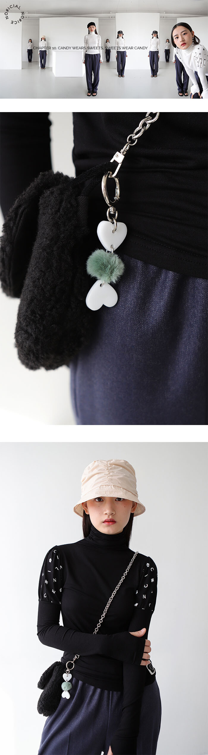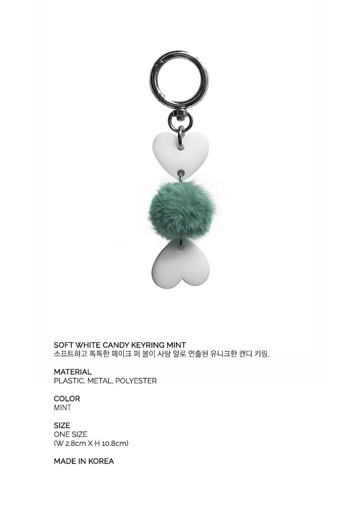 소프트하고 톡톡한 페이크 퍼 볼이 사탕 알로 연출된 유니크한 캔디 키링.