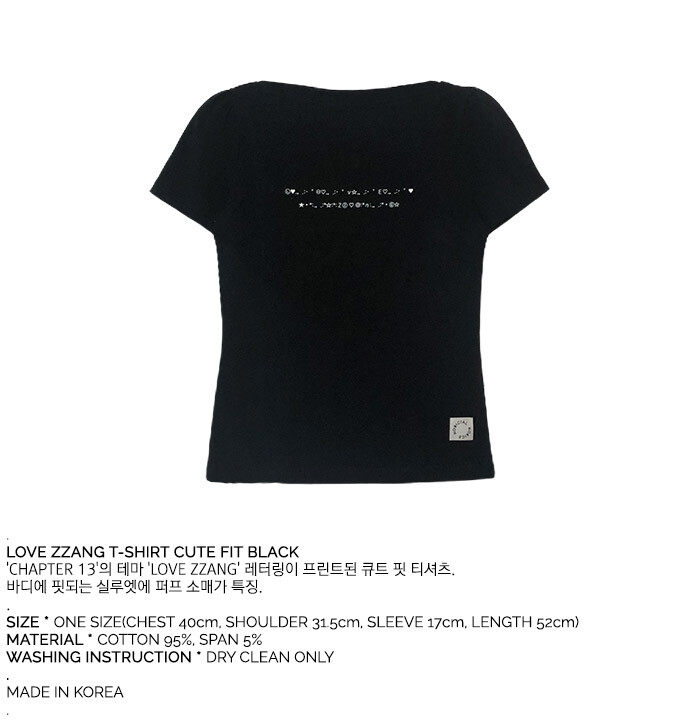 'CHAPTER 13'의 테마 'LOVE ZZANG' 레터링이 프린트된 큐트 핏 티셔츠. 바디에 핏되는 실루엣에 퍼프 소매가 특징.