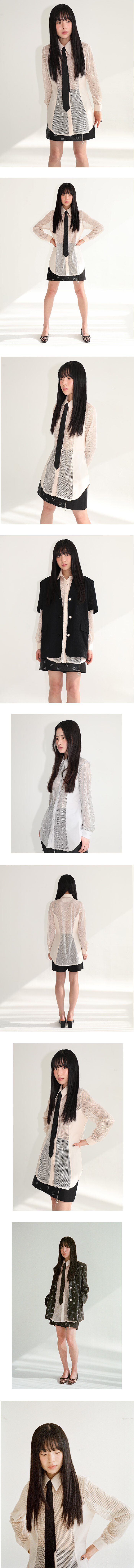메탈사가 섞인 매쉬 소재와 고밀도 코튼이 믹스 매치된 셔츠.
