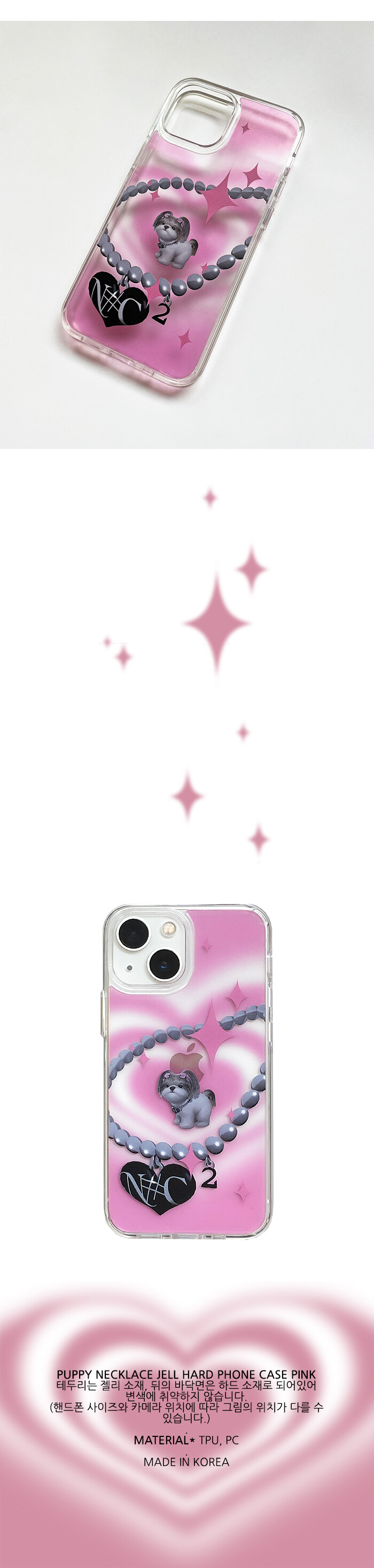 [주문제작] PUPPY NECKLACE JELL HARD PHONE CASE PINK