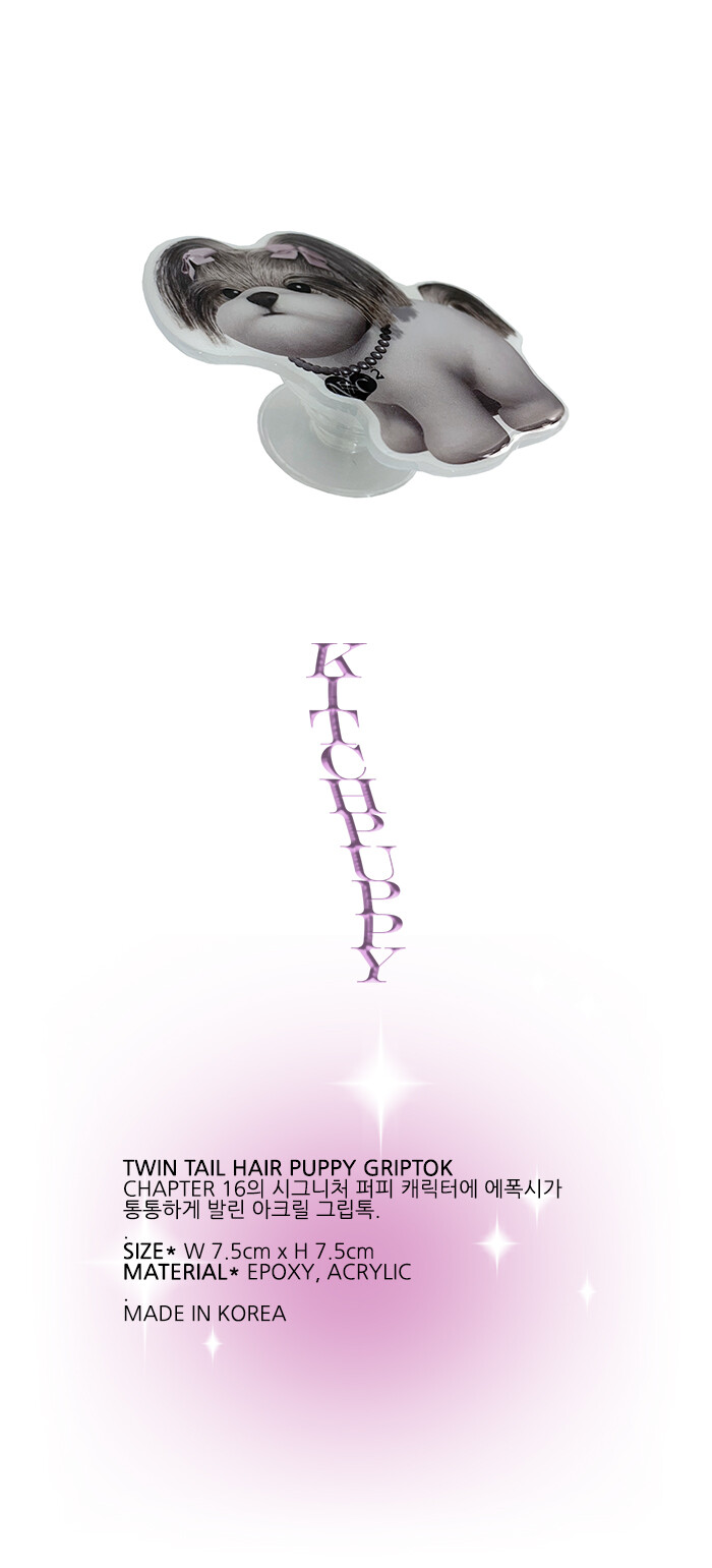 CHAPTER 16의 시그니처 퍼피 캐릭터에 에폭시가 통통하게 발린 아크릴 그립톡.