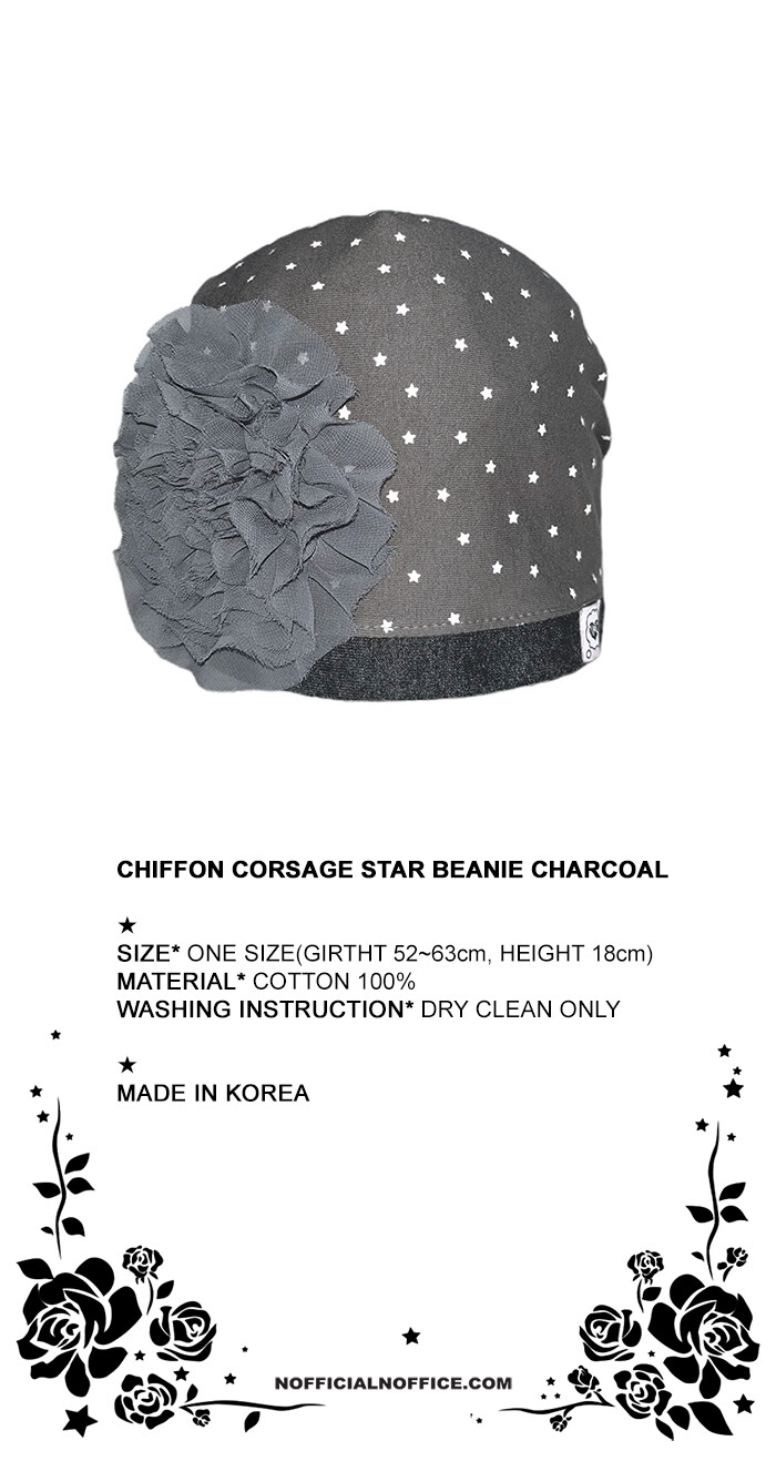 CHIFFON CORSAGE STAR BEANIE CHARCOAL