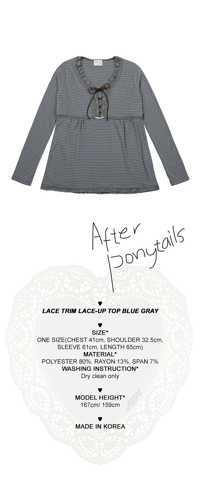 LACE TRIM LACE-UP TOP BLUE GRAY