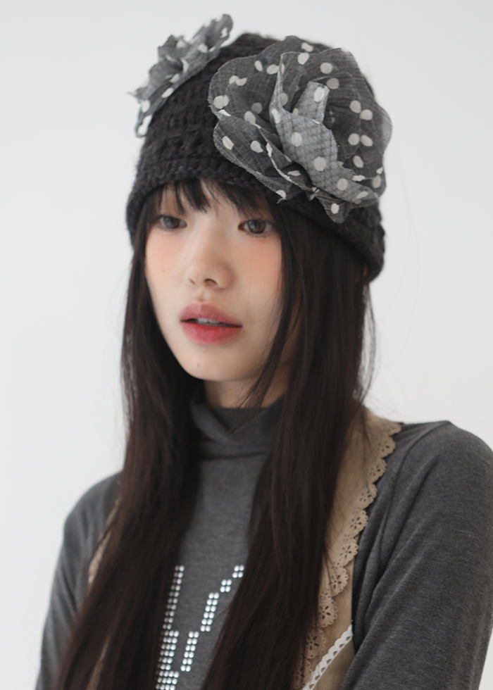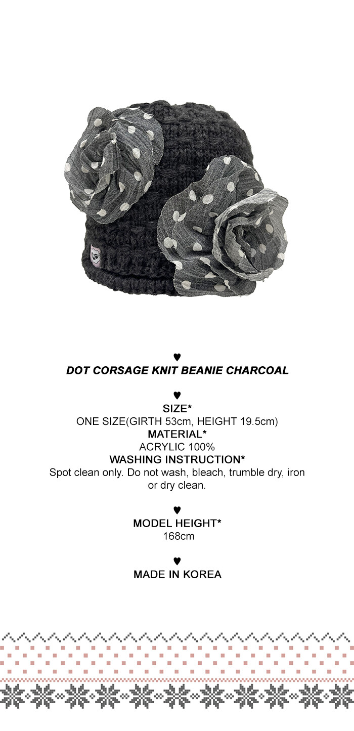 DOT CORSAGE KNIT BEANIE CHARCOAL