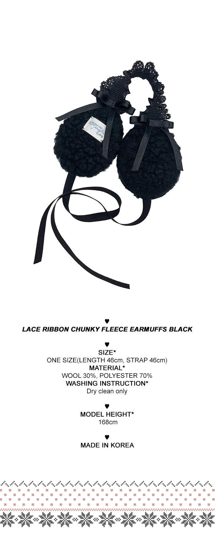 LACE RIBBON CHUNKY FLEECE EARMUFFS BLACK