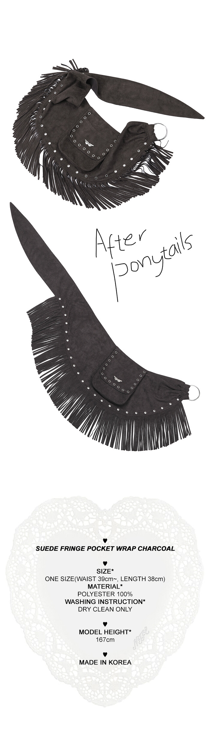 SUEDE FRINGE POCKET WRAP CHARCOAL