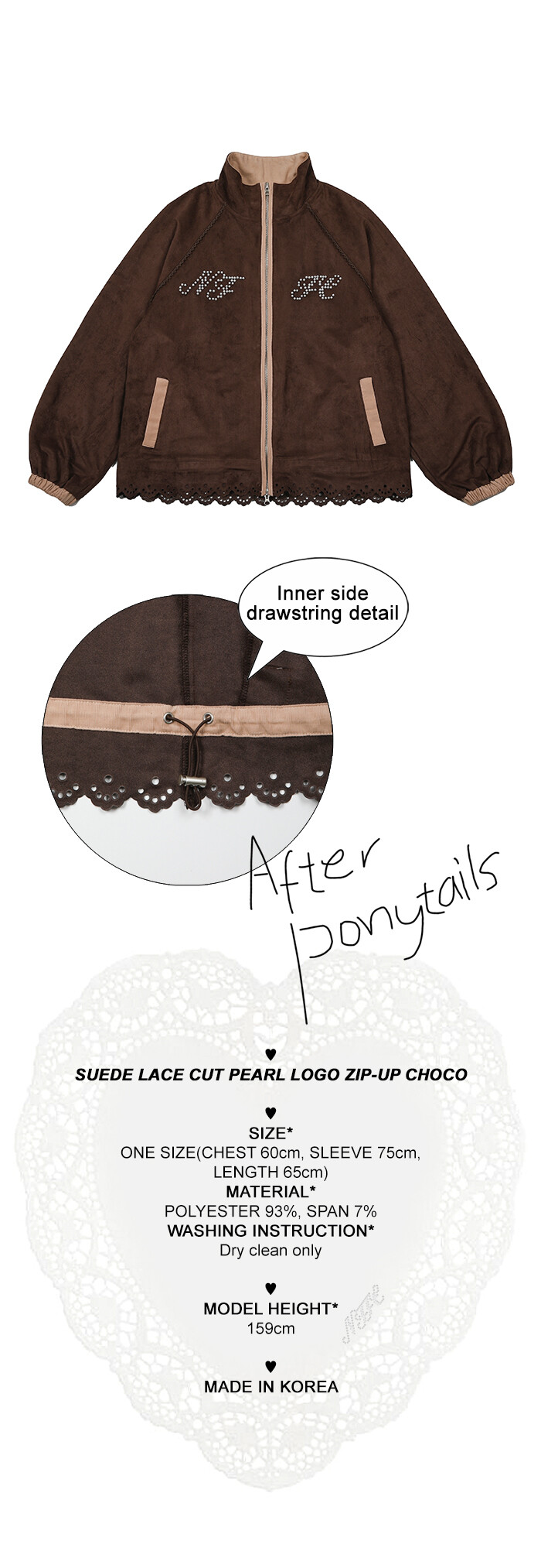 SUEDE LACE CUT PEARL LOGO ZIP-UP CHOCO