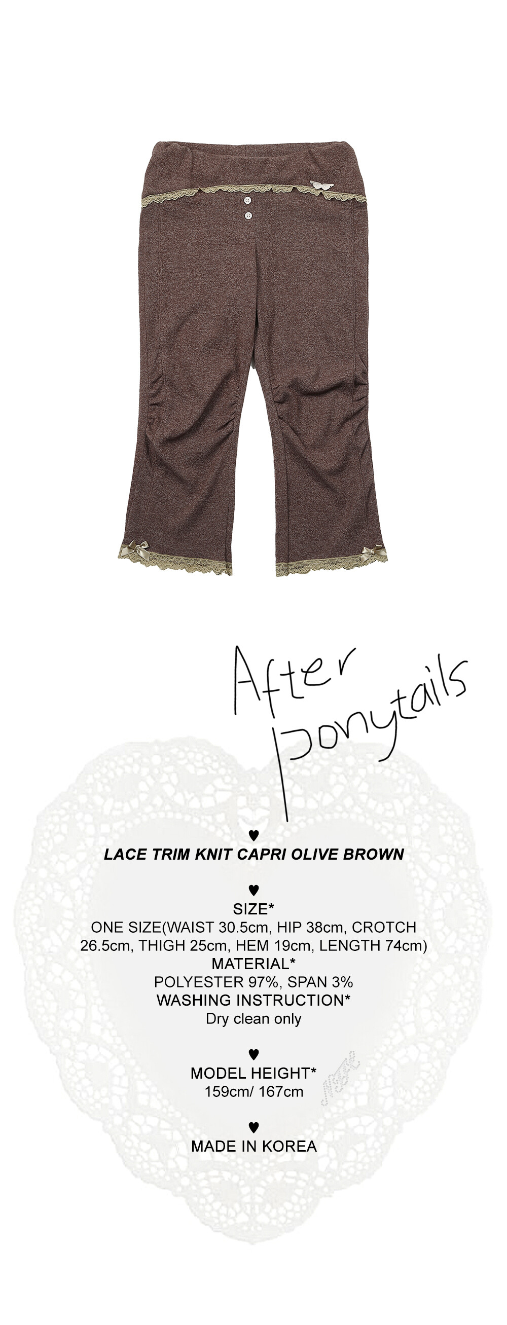LACE TRIM KNIT CAPRI OLIVE BROWN