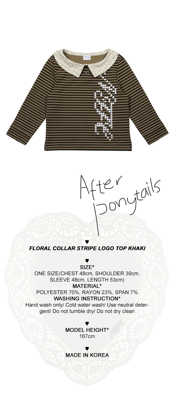 FLORAL COLLAR STRIPE LOGO TOP KHAKI