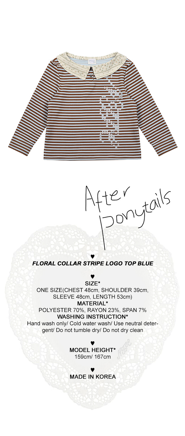 FLORAL COLLAR STRIPE LOGO TOP BLUE