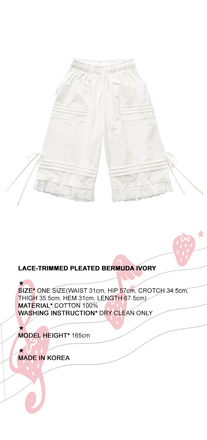 LACE-TRIMMED PLEATED BERMUDA IVORY