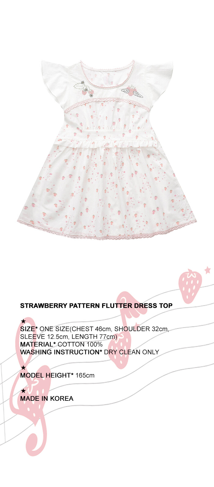 STRAWBERRY PATTERN FLUTTER DRESS TOP
