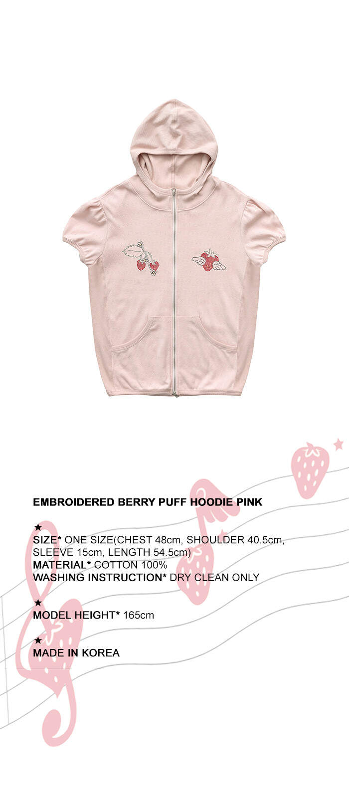 EMBROIDERED BERRY PUFF HOODIE PINK