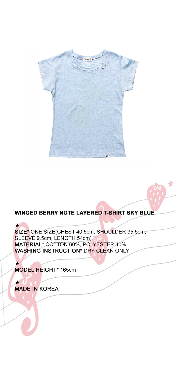 WINGED BERRY NOTE LAYERED T-SHIRT SKY BLUE