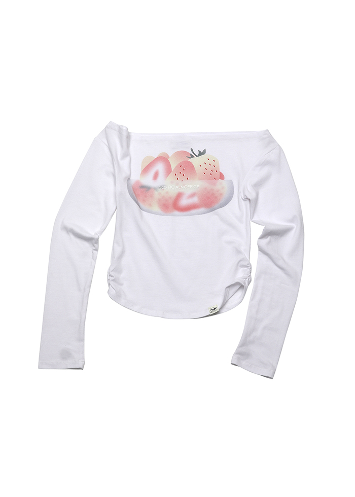SHEER STRAWBERRY BOWL OFF-SHOULDER TEE WHITE