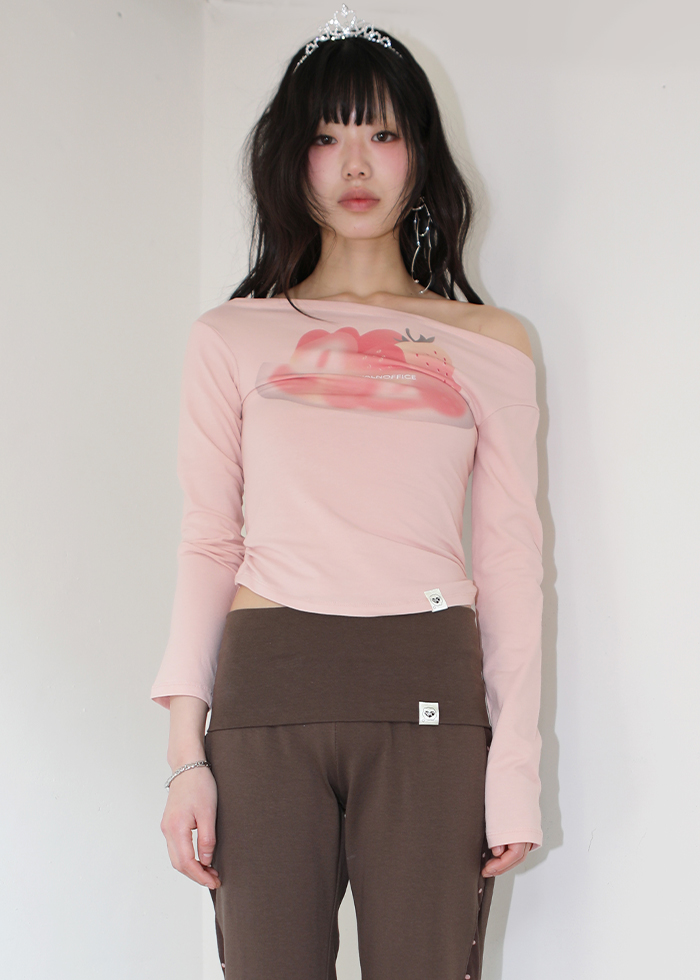 SHEER STRAWBERRY BOWL OFF-SHOULDER TEE PINK