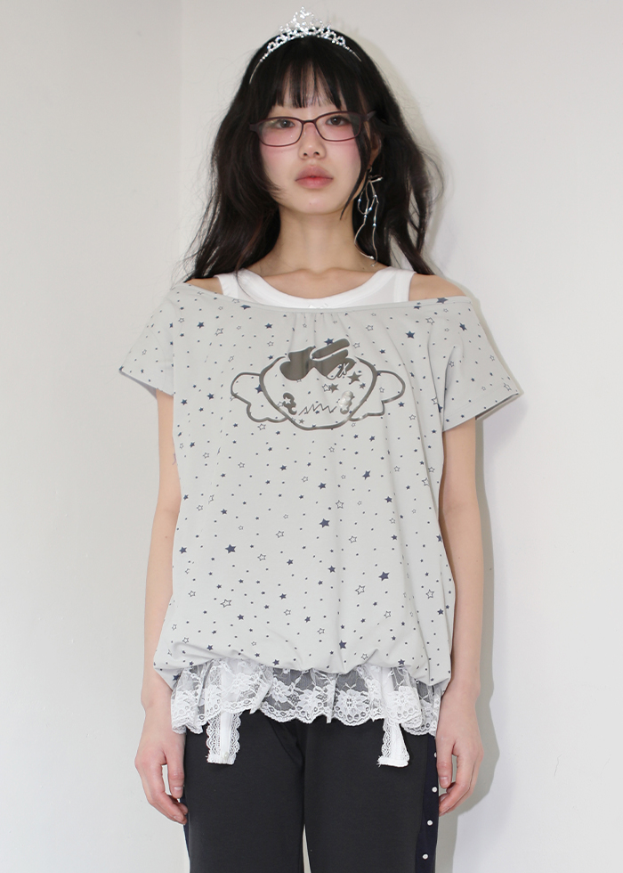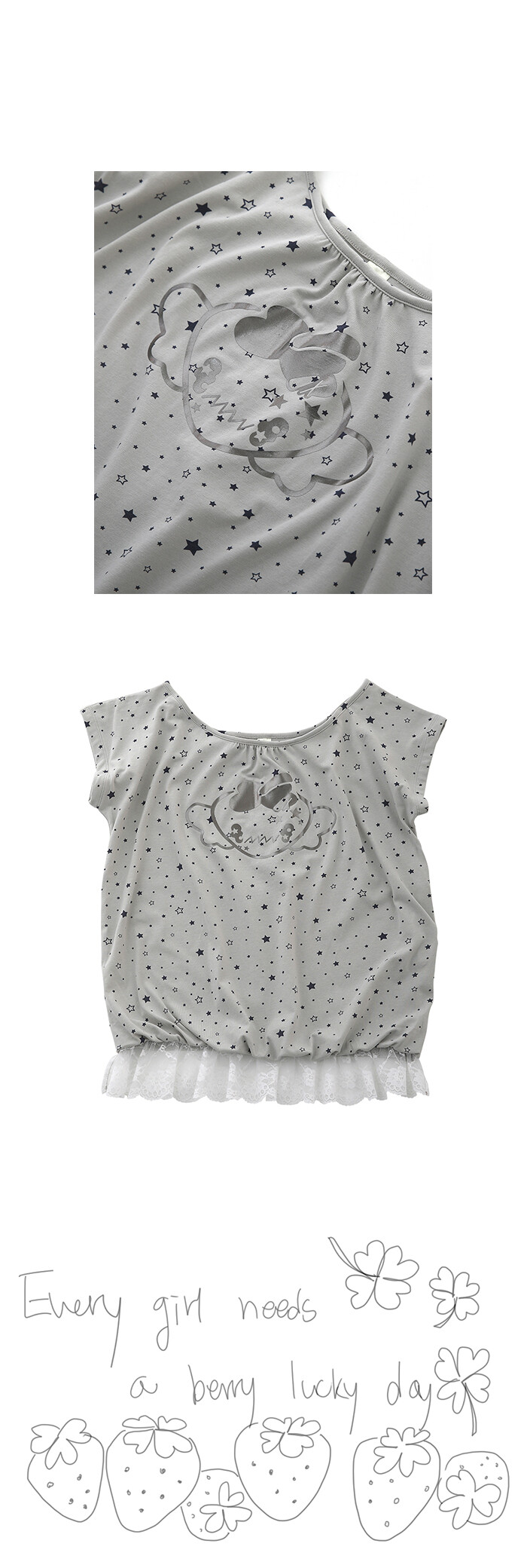 LUCKY BERRY SLOUCHY TEE LIGHT GRAY