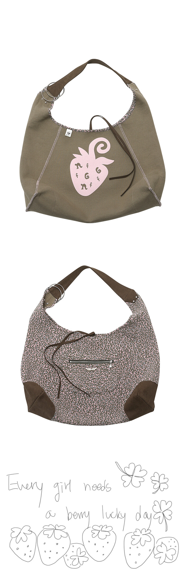REVERSIBLE BERRY LEOPARD SHOULDER BAG KHAKI