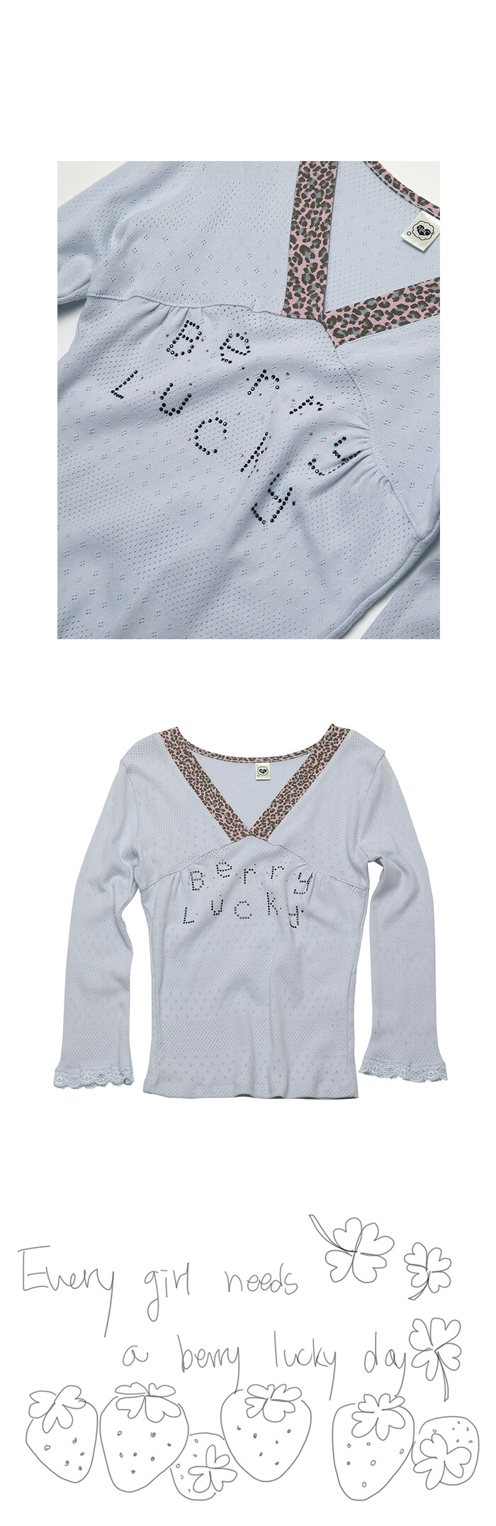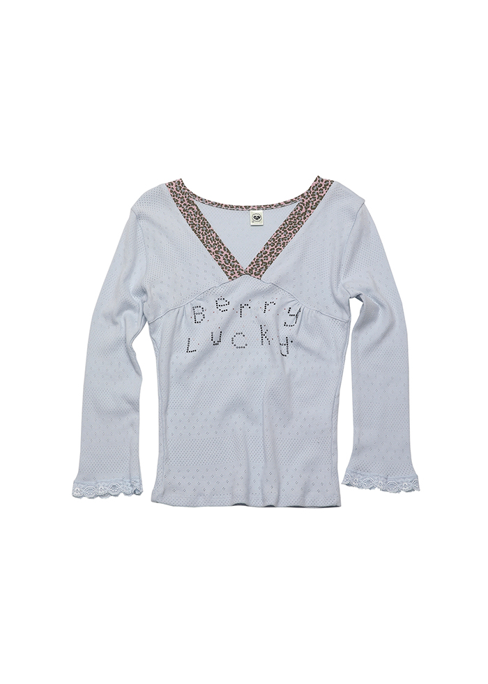 BERRY LUCKY LEOPARD NECKLINE TEE SKY