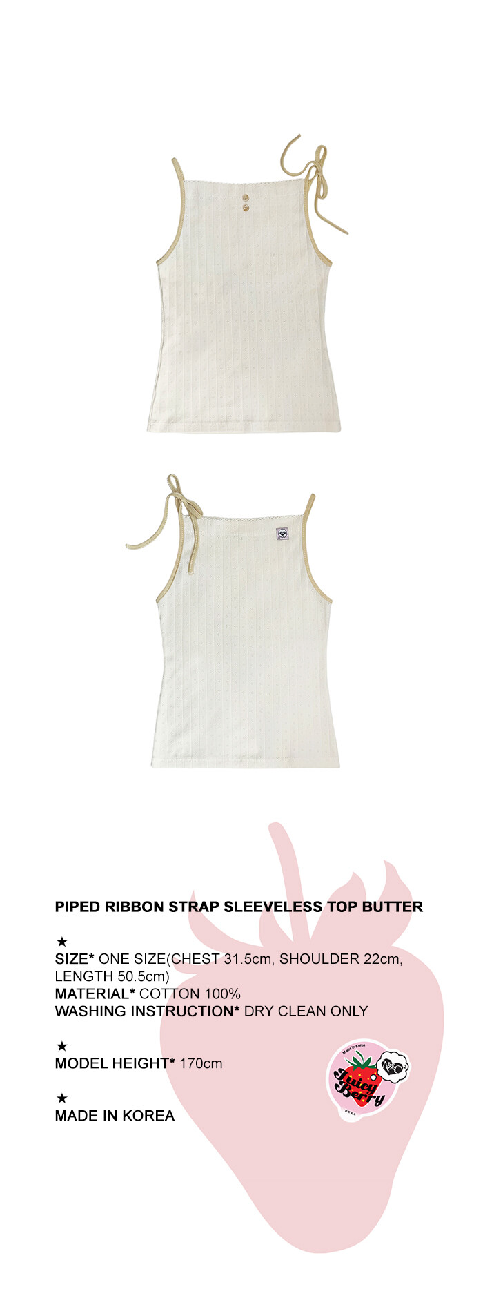 PIPED RIBBON STRAP SLEEVELESS TOP BUTTER