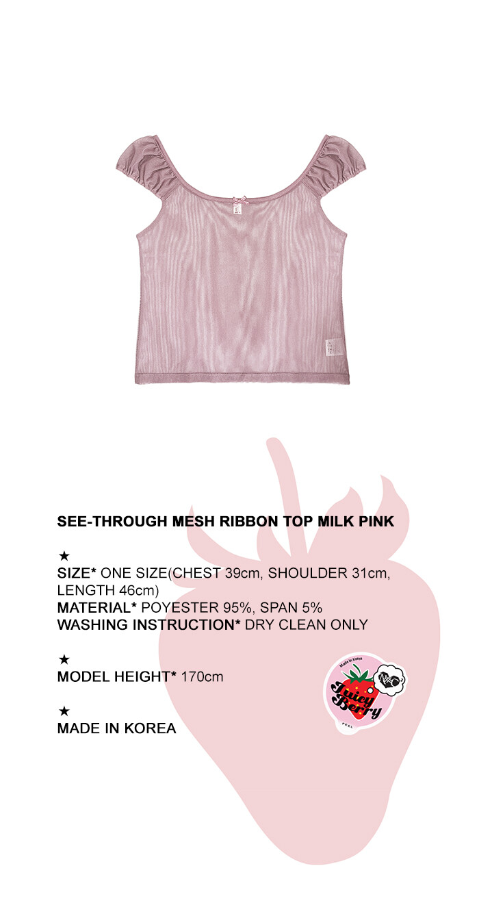 SEE-THROUGH MESH RIBBON TOP MILK PINK