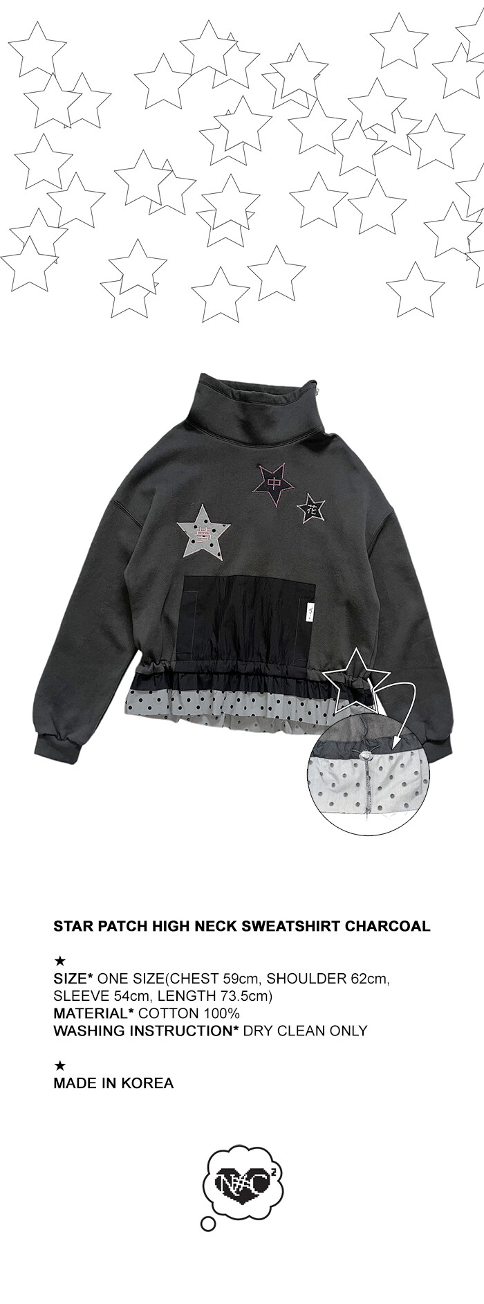 STAR PATCH HIGH NECK SWEATSHIRT CHARCOAL